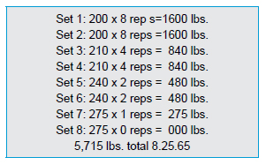 press 6 reps. Six times two hundred is 1200 lbs. for that lift.